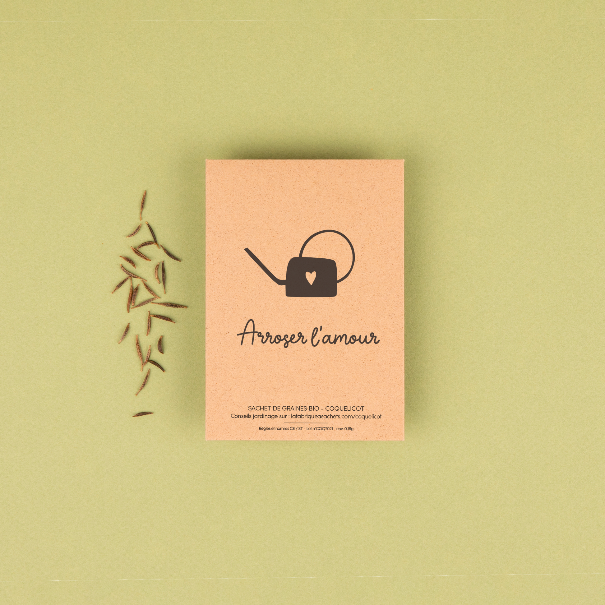 Semer, arroser et récolter, c’est le rituel de tout bon jardinier qui se respecte ! Ajoutez-y une touche d’amour et vous obtiendrez notre nouvelle gamme de sachets “Amour”. Ce sachet de graines biologiques et reproductibles contient des graines de coquelicots particulièrement appréciées des abeilles !