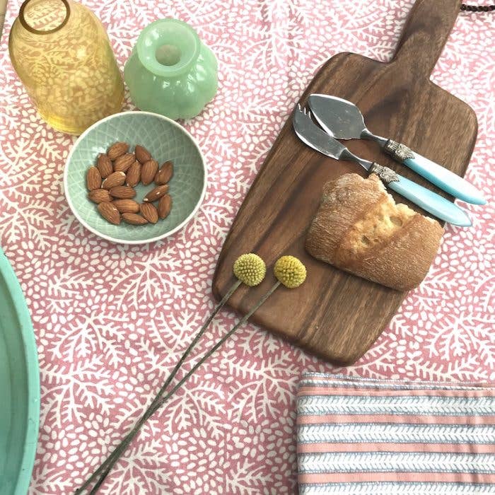 Torchon Imprimé à la main Corail - Fait main – 100% coton – 50 x 70 cm